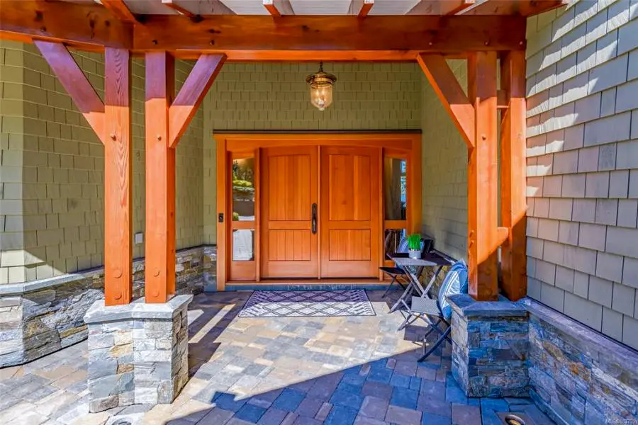 The custom home (a collaboration with Bruce Wilson) features a distinctive porte cochere, a covered structure that extends from the main entrance of the house. This architectural element not only adds to the aesthetic appeal but also provides practical benefits. The design of the porte cochere incorporates timberframe, echoing the rustic charm and natural materials used throughout the home. This cohesive design element enhances the overall aesthetic, creating a grand and welcoming entrance.